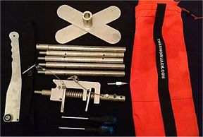 The SnowJack stands 6 feet tall and only weighs 10 pounds. The body is CNC machined out of a solid 6061 aluminum block and the 6 foot rod is made from solid 7075 true Aircraft Aluminum for maximum strength.