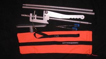 A 12 inch removable base that folds up for easy storage is held onto the rod with a wirelock pin. Stainless steel springs and Steel plates ensure that the SnowJack an handle even the heaviest of snowmobiles.